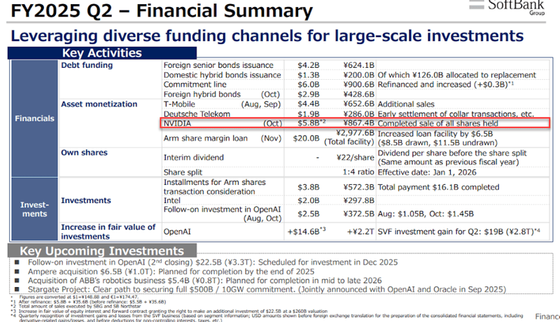 CFO Yoshimitsu Goto told reporters earlier that the sale of its Nvidia stake was part of SoftBank's cycle of "divesting and reinvesting," describing it as the company's "fate" to continually reallocate capital.
