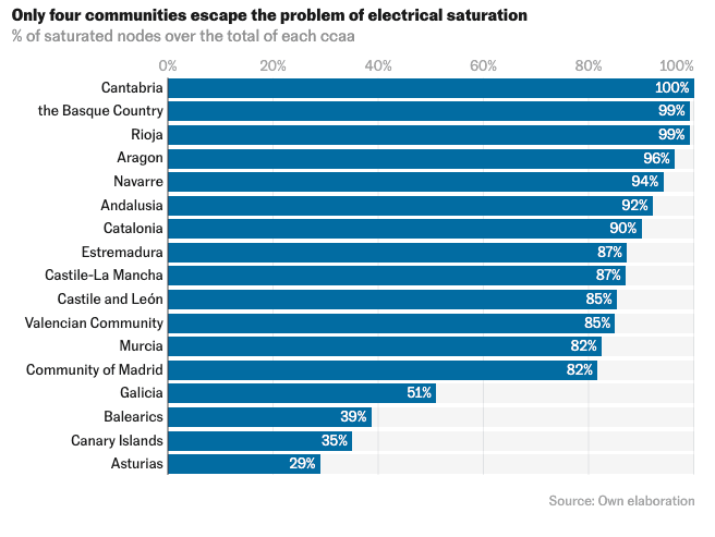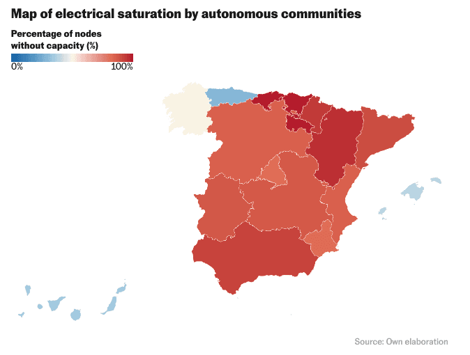 Aelec data showed that 83.4% of all these power nodes in the Spanish grid are at full capacity and can no longer accept new connections.