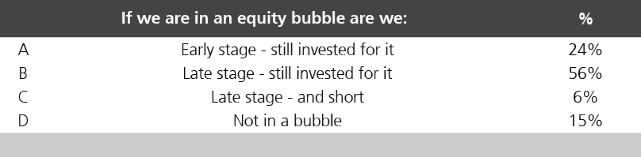 The audience at the UBS European conference held on November 11 was asked: "Are we in a bubble?"