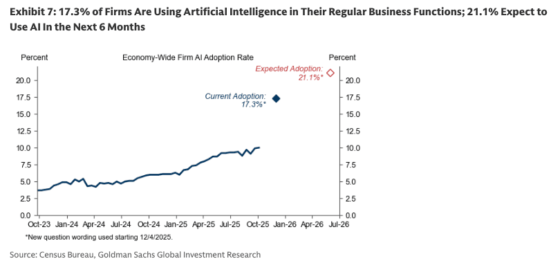 In a separate note, Goldman analyst Sarah Dong reported that the AI adoption tracker through December stood at 17.3%, with an expected target of 21.1% over the next six months.