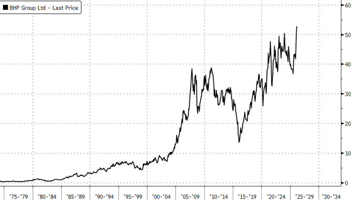 "In the last five years, the BHP CEO has set the business up with options," said Glyn Lawcock, head of metals and mining research at Barrenjoey Markets Pty in Sydney. "Clearly, growth to 2030 is really potash and iron ore, but you hit the start of the new decade, it's pretty much all copper."