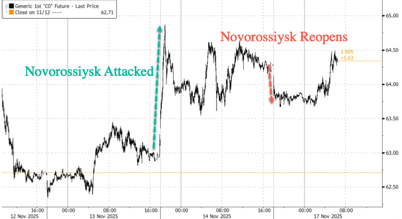 Brent Initially Slides After Russia Restarts Key Novorossiysk Port After Drone Attack