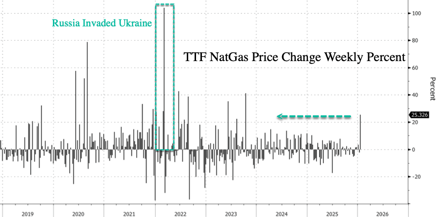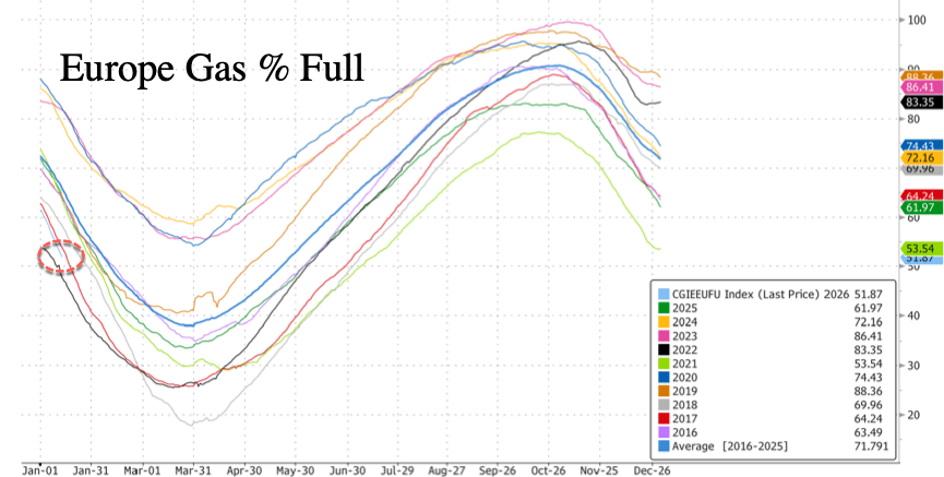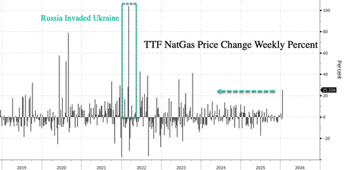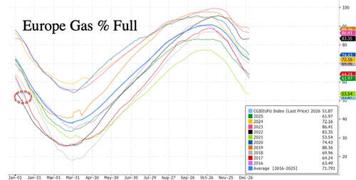 Bloomberg noted, "The rally highlights a deeper structural shift. Europe has lost much of the flexibility it once relied on to absorb supply shocks, leaving storage as one of its few remaining buffers as it procures liquefied natural gas from across the globe."