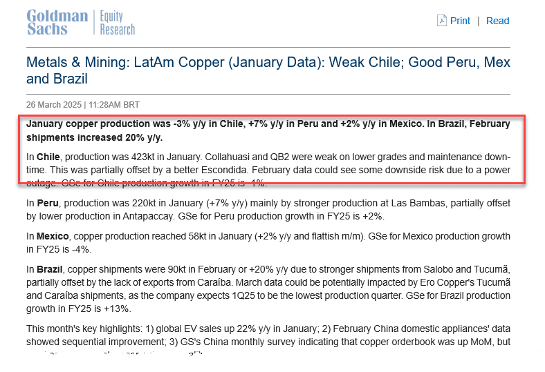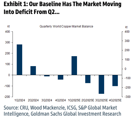 The analysts see global copper markets shifting into a deficit in 2Q25.