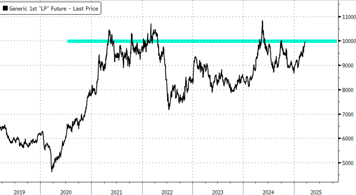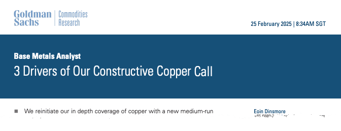"Copper just keeps grinding as it takes out $10k, we said it will overshoot, and its overshooting! Nothing more to my eye than this is when GIR expect refined metal tightness to deliver deficits (2Q25 onwards) and US is dragging metal in that will be stranded," Goldman analyst James McGeoch penned in a note to clients earlier.