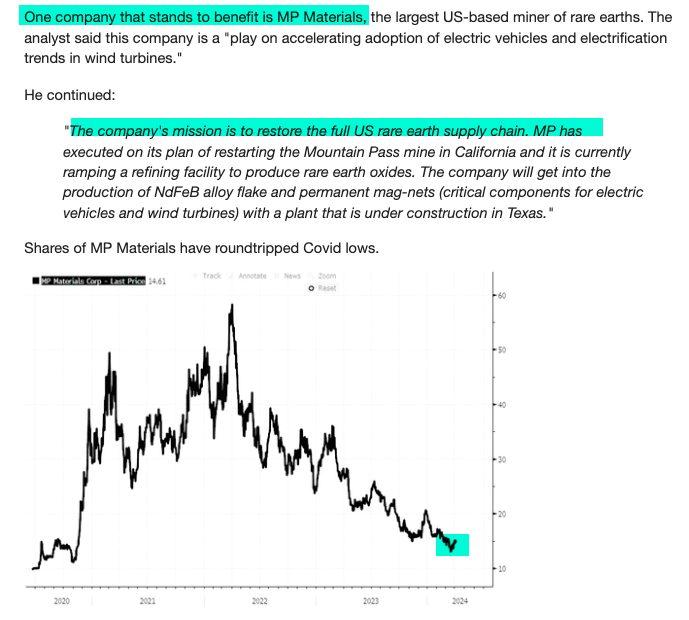 Eighteen months ago, we wrote in a note titled "Next Big Mineral Trade Revealed by Morgan Stanley" that MP Materials is the "one company that stands to benefit" from restoring America's rare earth supply chain.