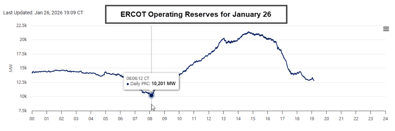 In ERCOT, the grid maintained operating reserves above 11,000 MW throughout the event. The thousands of natural gas facilities that underwent weatherization and inspection protocols following Winter Storm Uri performed as designed, with minimal forced outages reported.
