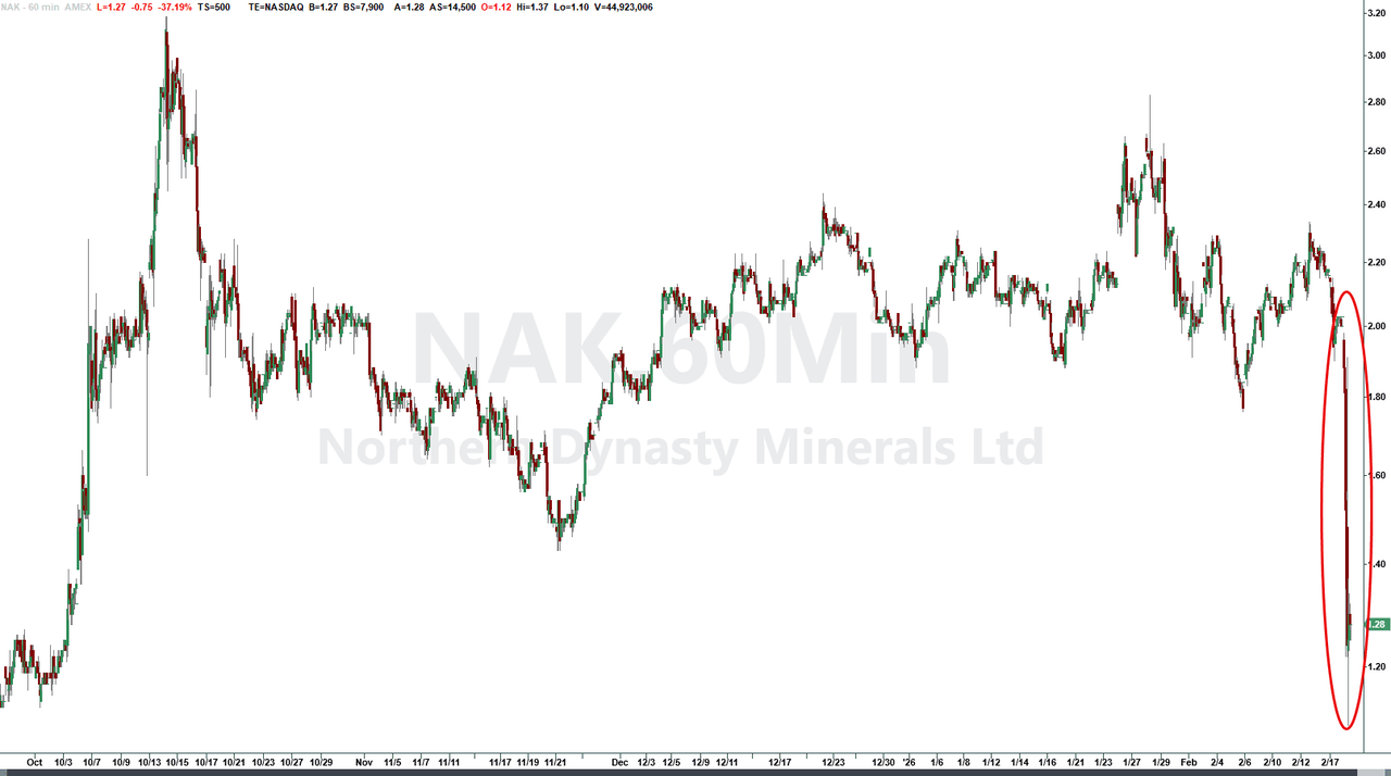 As a result, the stock (NAK) is down as much as 45% in Wednesday trade.