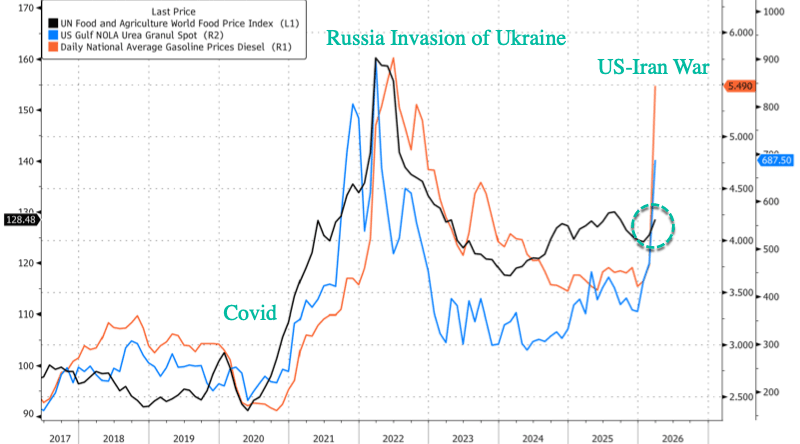 Then the third-order effects emerge: lower farm output and higher production costs (diesel and fertilizer), which can be transmitted through food supply chains into higher retail food prices, tighter supplies for processors, and pressure on food security.