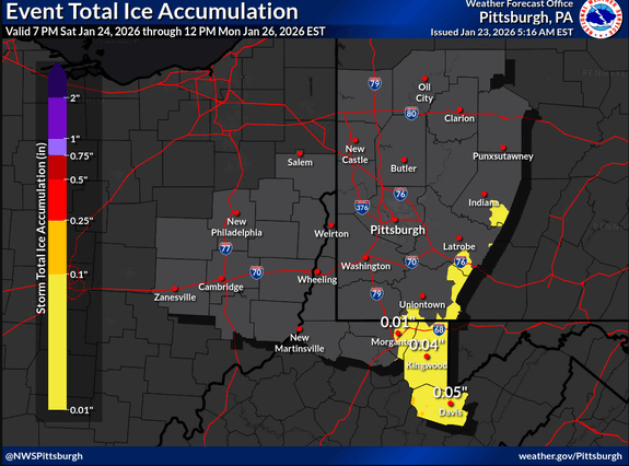 Freeze-offs are already taking effect, with Pittsburgh projected to experience overnight lows near 0°F by January 27.