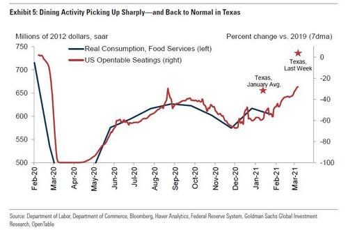 As epidemiologists everywhere have struggled to come up with an explanation, it's worth noting that Texans are dining out more, according to Opentable seatings, which have become a closely watched proxy for post-quarantine economic activity.