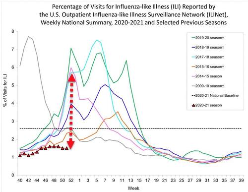 On December 15, Nature.com noted that “(m)easures meant to tame the coronavirus pandemic are quashing influenza and most other respiratory diseases” - calling what’s going on the “influenza fizzle.”