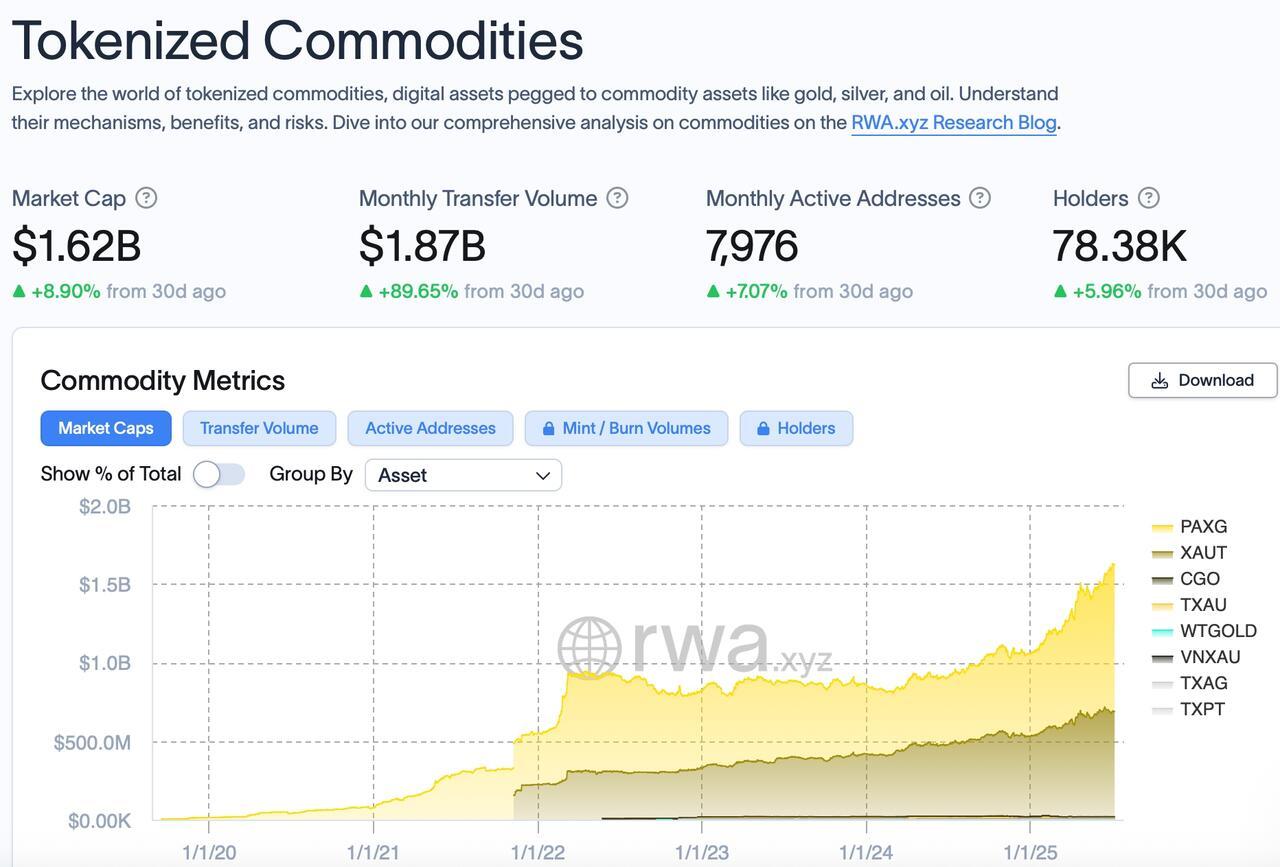 RWA tokenization has emerged as one of the crypto's trends in 2025, further blurring the lines between traditional finance and digital assets. According to RWA.xyz data, tokenized commodities lag behind other tokenized assets such as US Treasurys and the private credit market. However, it has been growing.