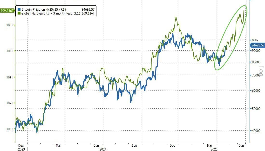 And as we have noted recently, bitcoin continues to track lagged global liquidity almost perfectly...