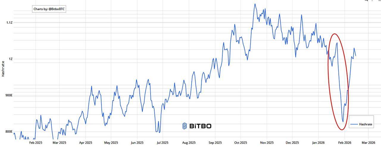 The hashrate - the amount of computing power operating on the Bitcoin blockchain at any given time - dropped by about a third in recent days, explained largely by the hundreds of etahash (a measure of Bitcoin mining output) of Bitcoin mining capacity participating in such demand-response programs.