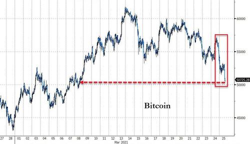 While immediate catalysts are unclear, traders are suggesting four general themes: Recent NFT artist 'winners' cashing out their gains, Ray Dalio warning of the potential for US to 'ban' bitcoin, some waning institutional interest, and most immediately prescient, a record size options expiration could be impacting the underlying price..