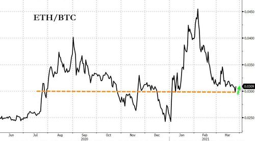 Powell and Yellen did not help this week (well are we really surprised that the very establishment that crypto would disrupt would push back?) and that prompted Bridgewater's Ray Dalio to reiterate his previous warning that while he sees Bitcoin as a "storehold of wealth" and protection against the folly of policymakers, he warns that there is a “good probability” that the U.S. government could ban Bitcoin just as it did with gold ownership in the 1930s.
