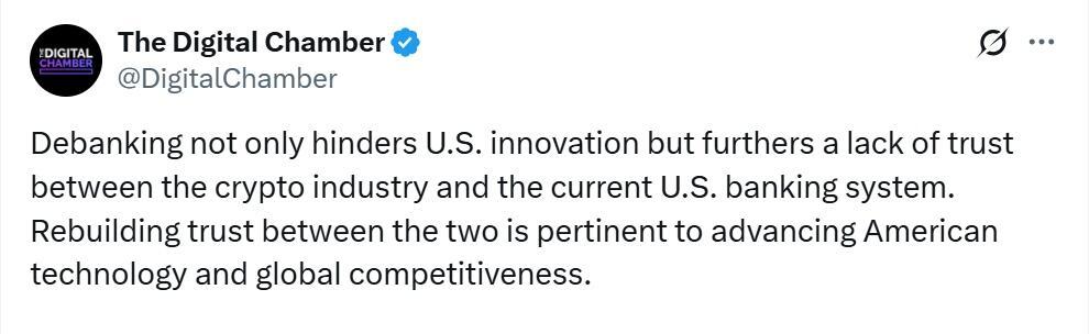 In a post on X, the organization claimed that debanking results in “reputational damage, loss of revenue, increased operational costs, and inability to launch or sustain services.” It also claimed that it forces some companies to move offshore.