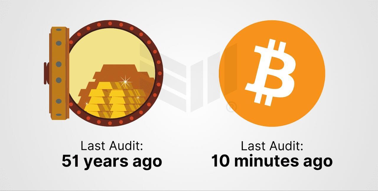 Unlike gold audits, which are infrequent and manual, Bitcoin’s validation happens automatically through its proof-of-work consensus mechanism.