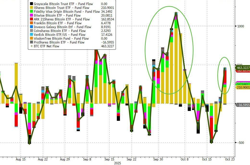 And sure enough, on Tuesday, the funds saw $477 million in net positive inflows, according to Farside Investors, breaking a four-day losing streak.