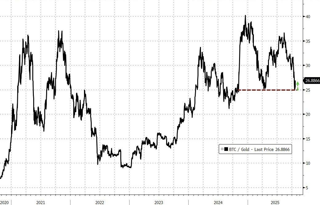 Gold has been outperforming Bitcoin a lot recently (as chart), something which has perhaps started to turn