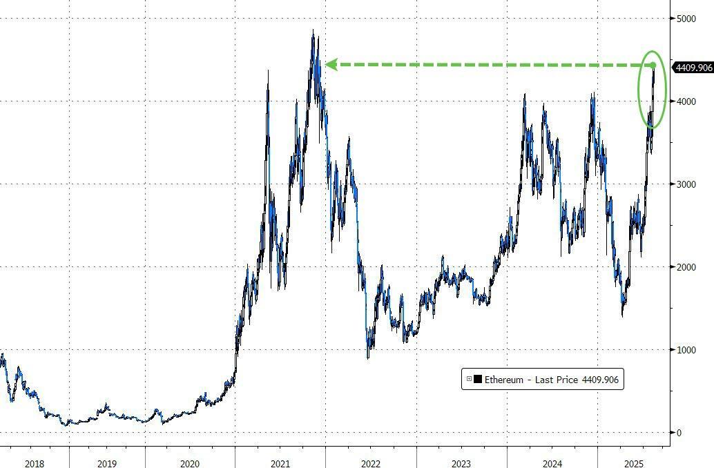 Ethereum topped $4400 for the first time since Dec 2021...
