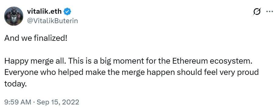 Ethereum completes key upgrade as the crypto market descends into chaos. Source: Vitalik Buterin