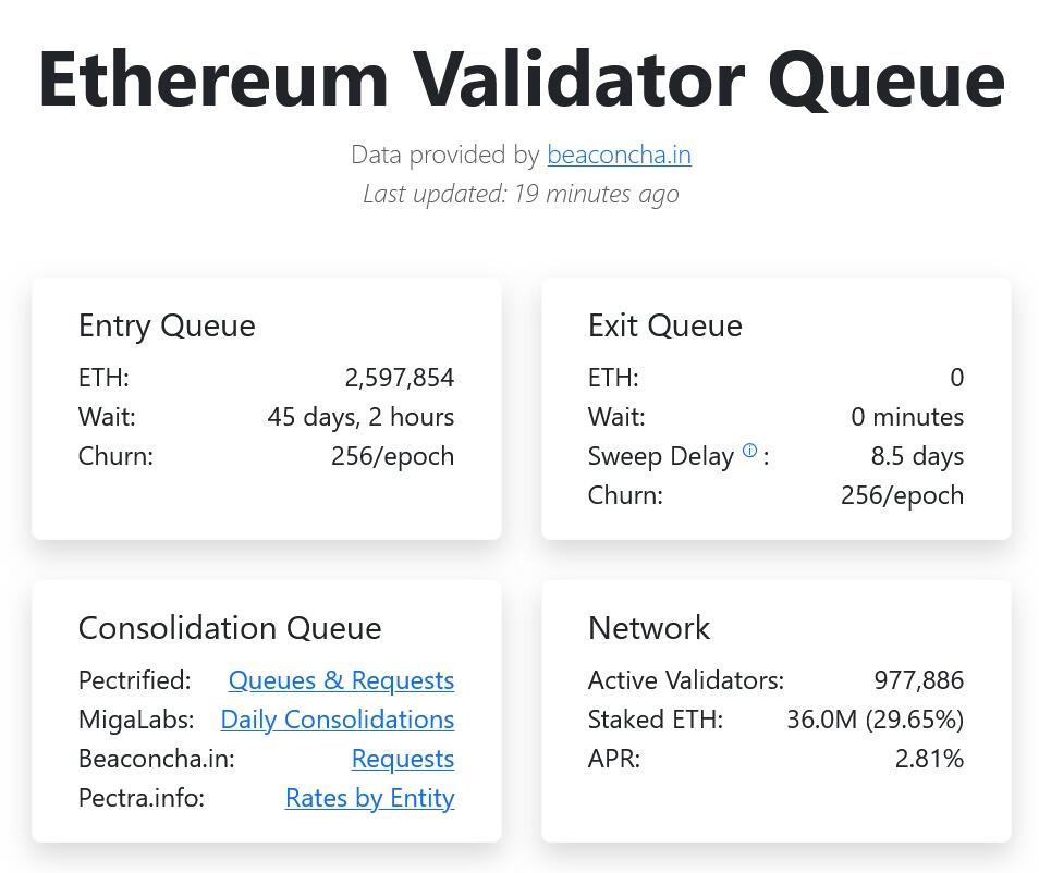 Ethereum staking entry and exit queue data. Ethereum Validator Queue
