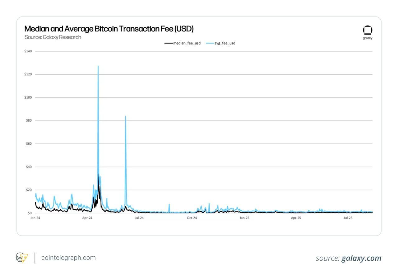 CoinShares made the same point from the mining side, saying transaction fees “have fallen to historic lows,” sitting at “less than 1% of total block rewards” during parts of 2025.