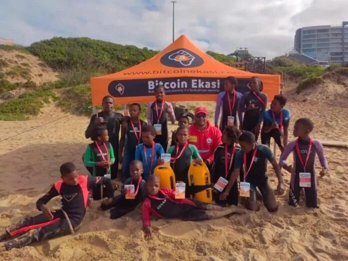 Above: Children from South Africa’s poorest villages learn to surf via the Bitcoin Ekasi township project