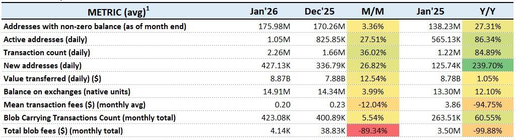However, for Ethereum, average daily active addresses, new addresses, and transaction counts were up by +27.5%, +26.8% and +36.0% MoM respectively.