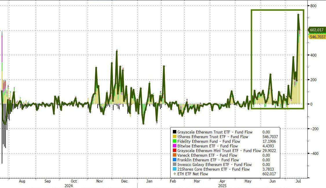 Rising demand for ETH is also reflected by Strong ETF flows during June and July, following stunted performance earlier this year due to macroeconomic fears and a flight to safety from risk assets.