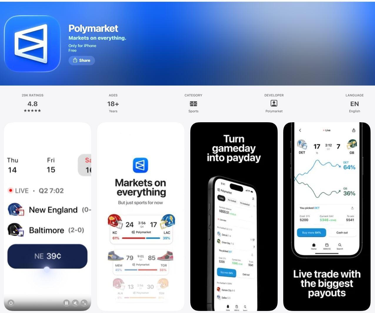 Initially available in the App Store under the sports category, the app allows U.S. users to place bets on sports events, with plans to expand into other markets including proposition bets and election wagers.