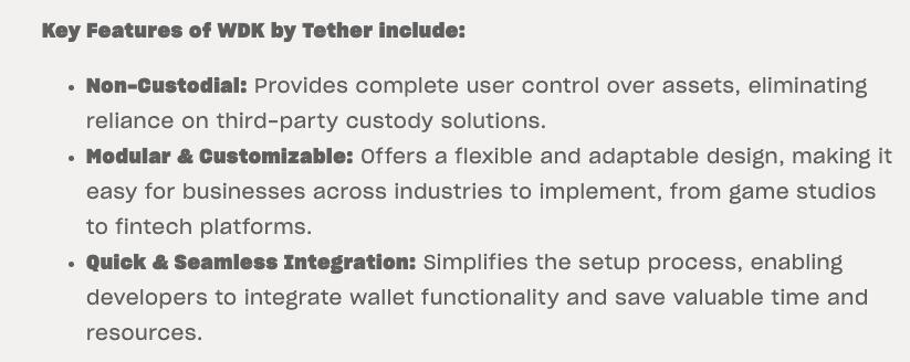 An excerpt from Tether’s WDK announcement in November 2024. Source: Tether