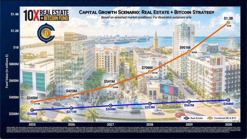 Cardone's X feed has seen a flood of posts over the last year about a "Bitcoin hybrid" strategy that works as a real-estate syndication, running a built-in Bitcoin accumulation plan inside the same fund.