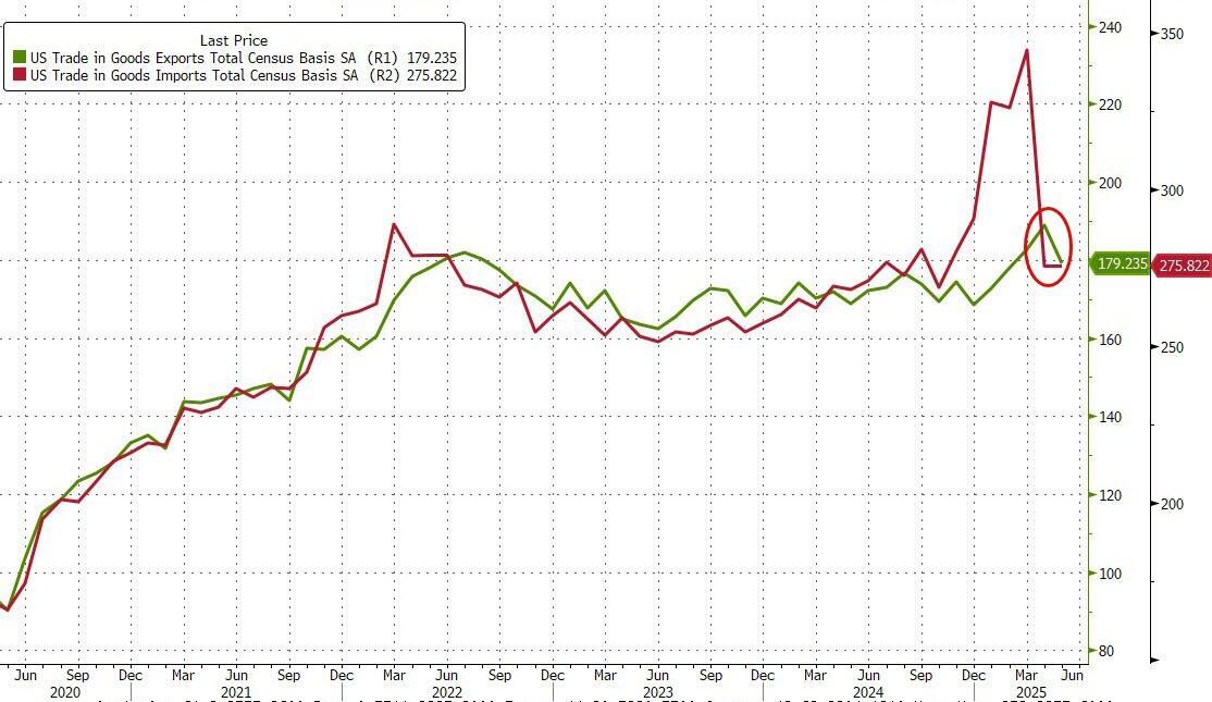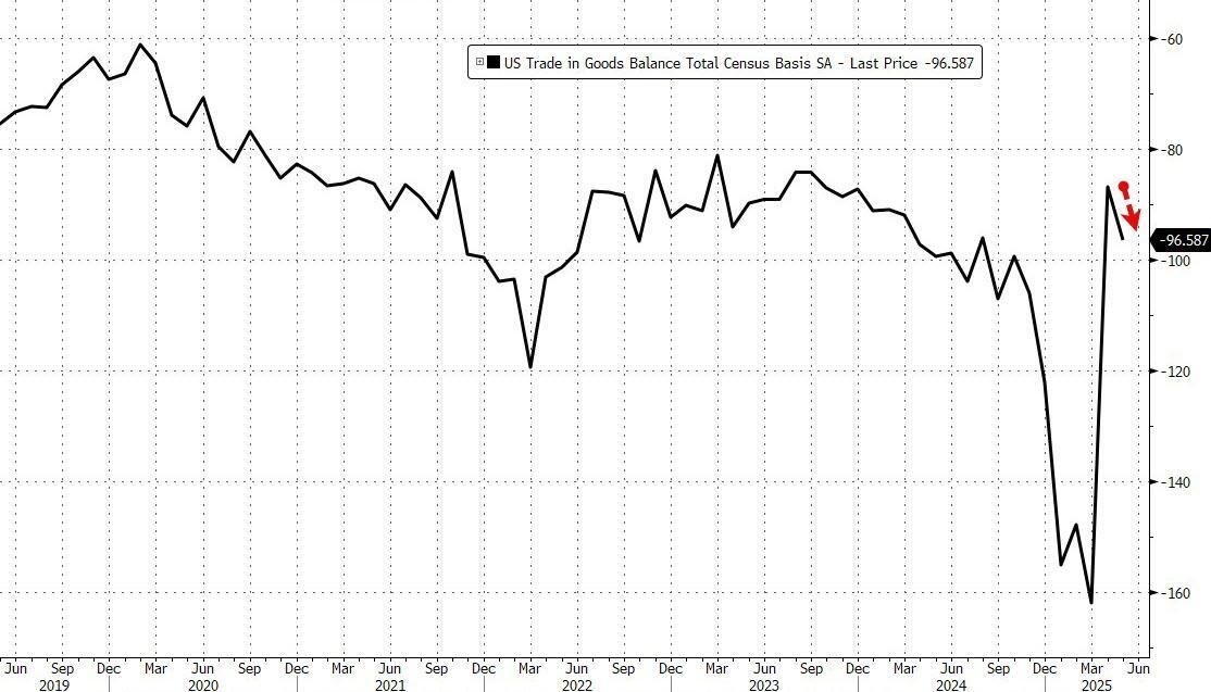 As Bloomberg reports, the wider May deficit indicates trade may contribute less to second-quarter growth than initially anticipated. Prior to the latest figures, the Federal Reserve Bank of Atlanta’s GDPNow estimate showed net exports contributing more than 2 percentage points to second-quarter GDP.