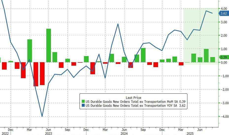 Ex-Transports, Core Orders rose for the 5th straight month (+0.39% MoM), up 3.6% YoY...