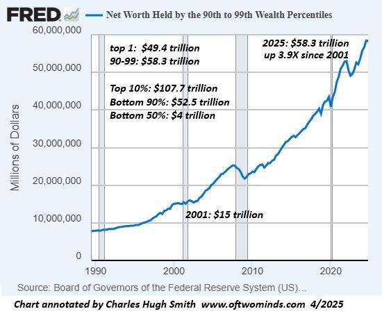 This massive, sustained transfer of wealth via credit expansion has been going on so long that it's now normalized: very few people can recall an economy that shared the gains with wage earners rather than diverting most of the nation's wealth to the already-wealthy.