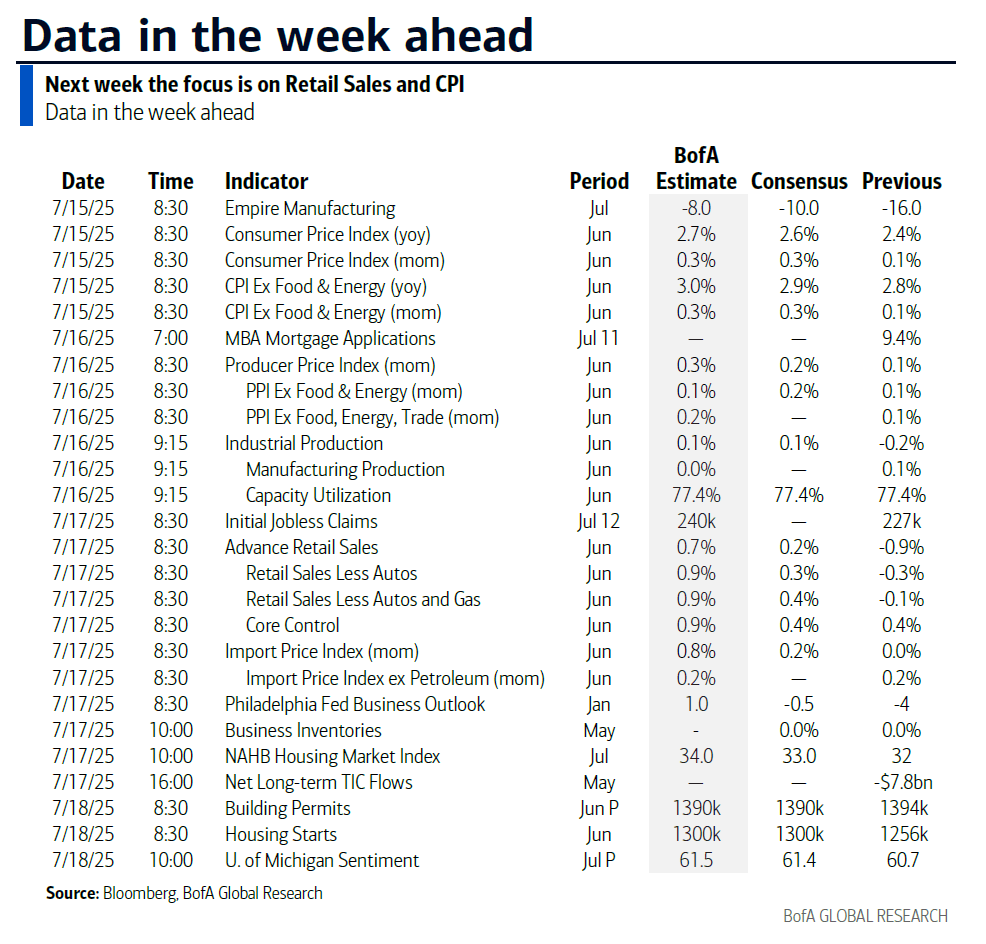 Given the above, this week is important as we see the latest US CPI numbers (tomorrow) with PPI (Wednesday) following. Before we preview these, the other key global releases are the other CPI numbers in Canada (also tomorrow), the UK (Wednesday) and Japan (Friday). In the US, there will also be retail sales (Thursday) and industrial production (Wednesday) reports for June, along with the preliminary University of Michigan survey (Friday) for July. Claims on Thursday corresponds to payroll survey week so it’ll be interesting to see whether the recent improvements continue given the payroll implications. Growth will also be in focus in China, where Q2 GDP and June activity data are out tomorrow. Also important will be the US banks kicking off the Q2 earnings season tomorrow, with semiconductor firms ASML and TSMC also reporting this week.