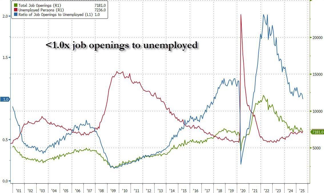 Labor Market Crosses Critical Threshold: For First Time Since 2021 There Are More Unemployed Than Job Openings