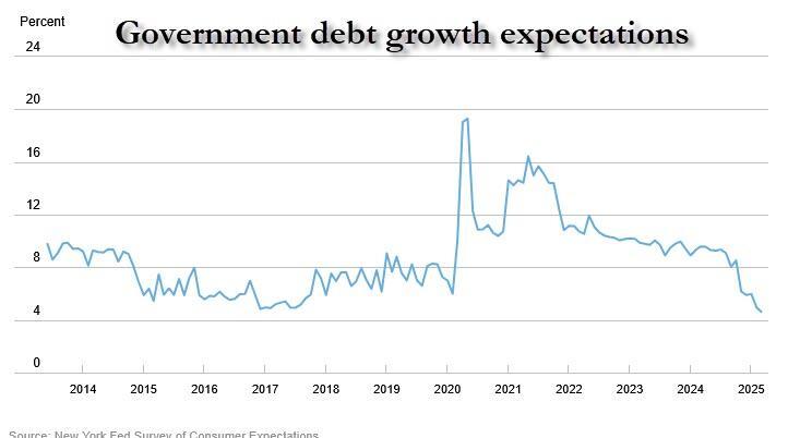 - Median year-ahead expected growth in government debt decreased by 0.4 percentage point to 4.6%, the lowest reading of the series since its start in June 2013.