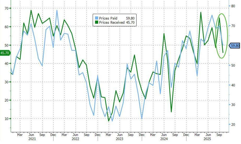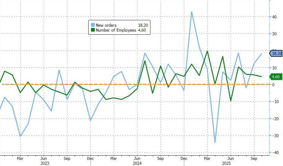 Additionally, while the headline sentiment signals tumbled, rather confusingly we see the new orders index rose and the employment index ticked down but continued to reflect overall increases in employment.