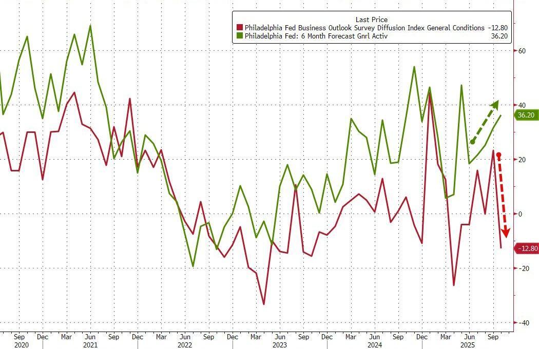 However, while the headline sentiment index tumbled, the survey’s future indicators suggest "widespread expectations for growth over the next six months" according to the Philly Fed...