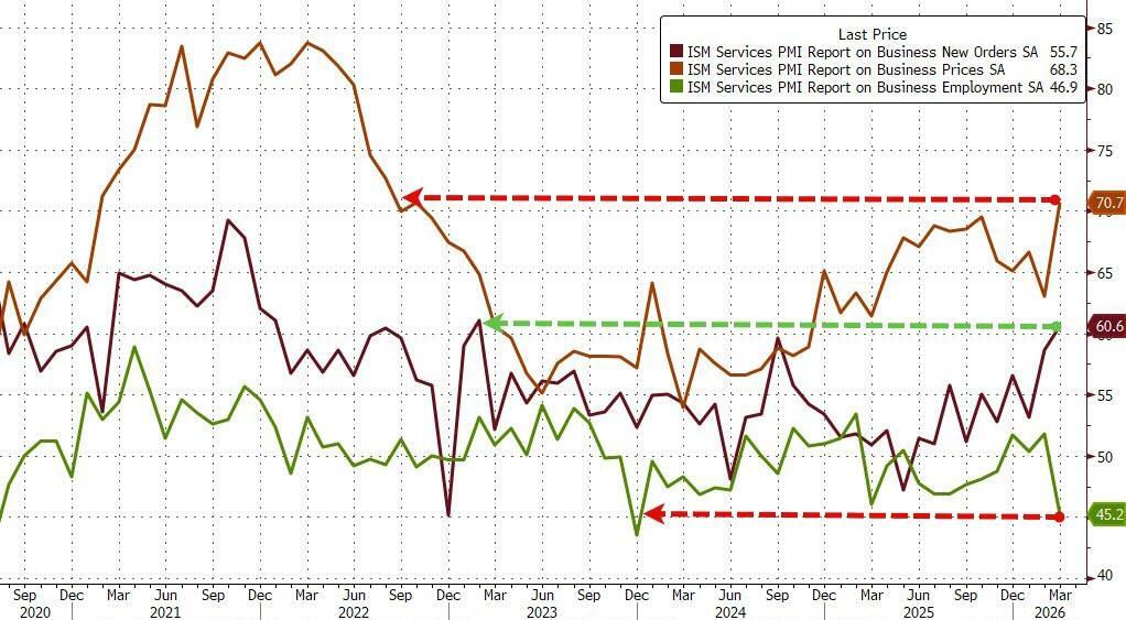 Prices Jump, Employment Dumps As US ISM Services Disappoints In March