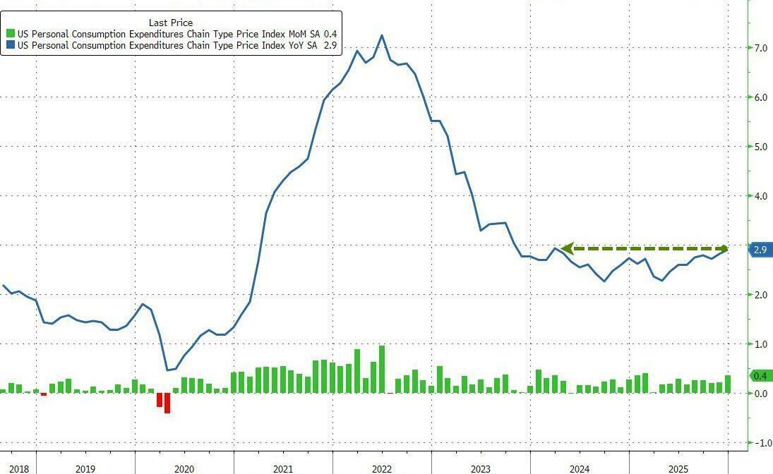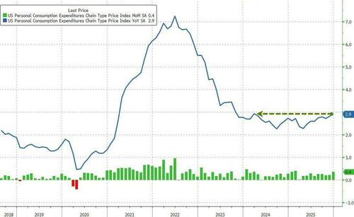 ... suggesting that all else equal, the US is once again flirting with stagflation, although as has so often been the case, the Q4 GDP print is an outlier, as is the December PCE, the first impacted by the government shutdown the second heated up by higher commodity prices which will reverse as soon as the geopolitical circus involving Iran quiets down.