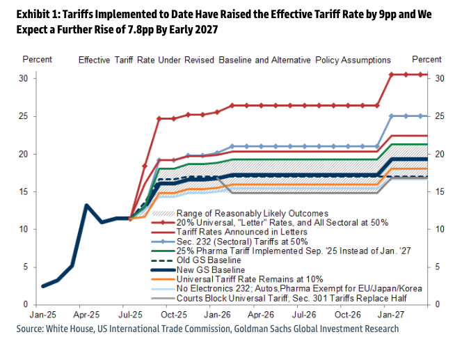 Goldman Sachs Chief Economist Jan Hatzius updated his U.S. effective tariff rate to a higher level, but with a slower rise...