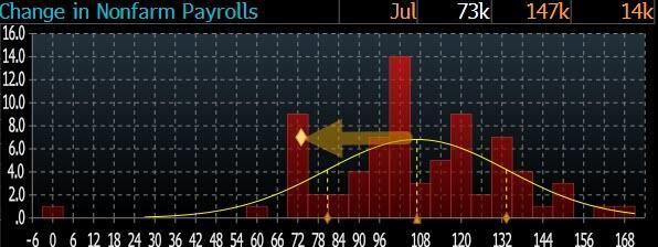 Any way you cut it, today's jobs report was ugly. Starting at the top, where the July print of just 73K missed most estimates...