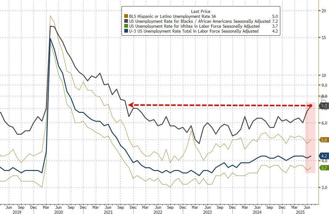 While the unemployment rate was unchanged at the headline level, the unemployment for blacks surged to the highest since October 2021.