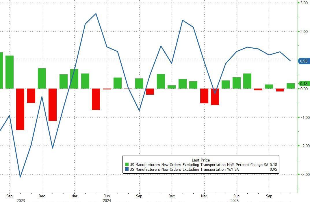 Core Orders (ex transportation) rose 0.2% MoM, also rebounding from a 0.1% MoM decline in October...
