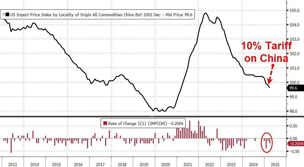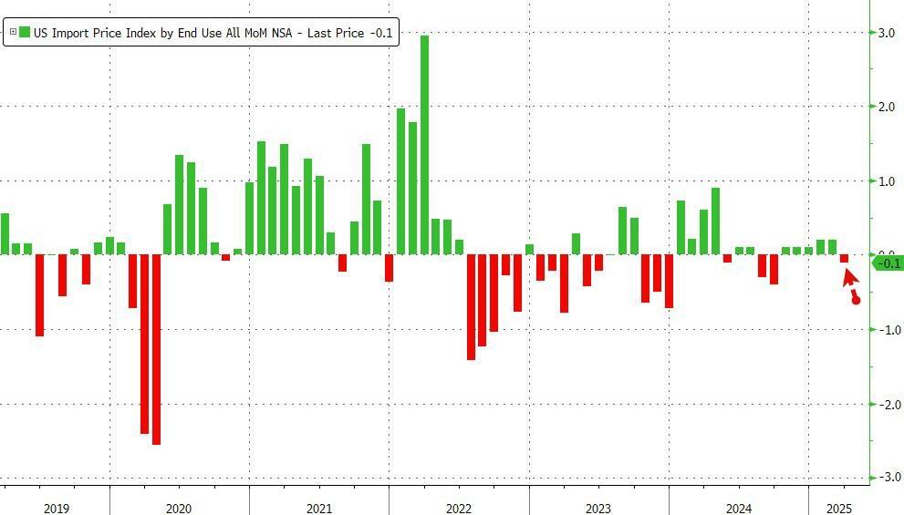 Second, and more systemic, we saw US import prices DROP 0.1% MoM in March - the first decline in import prices since September 2024...